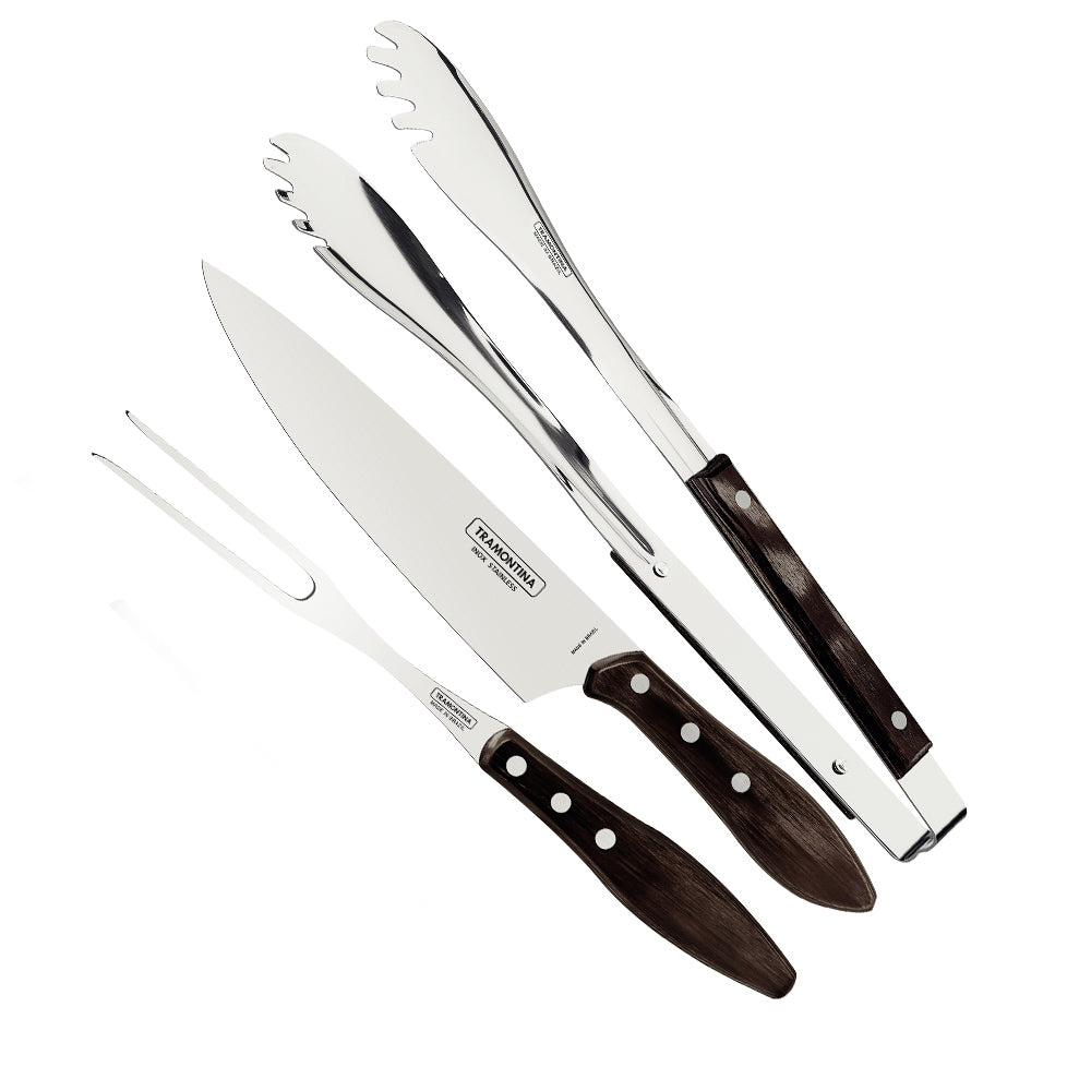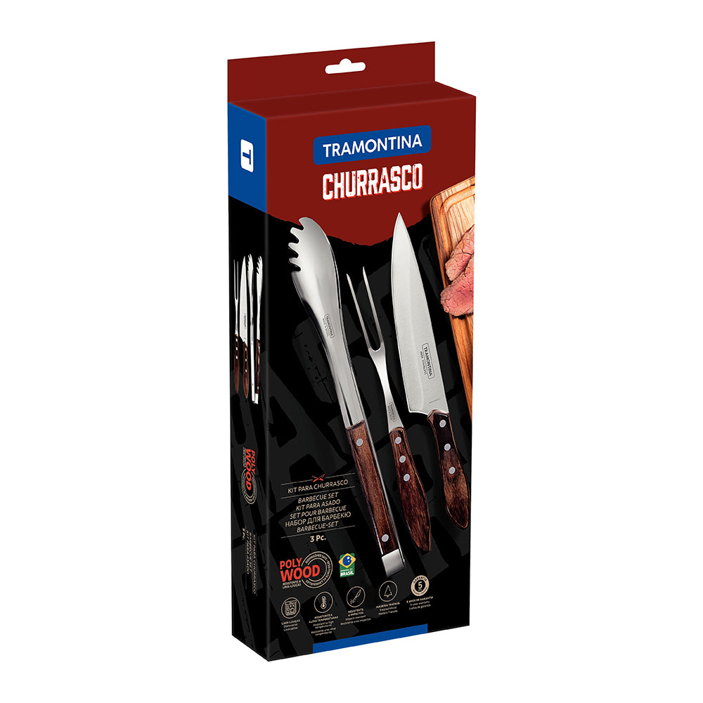 Tramontina's Churrasco line offers a complete solution for you to prepare and serve a delicious barbecue. With Tramontina's 3-piece utensil set are made of highly durable steel with treated Polywood handles which offer resistance to shock and high temperatures.