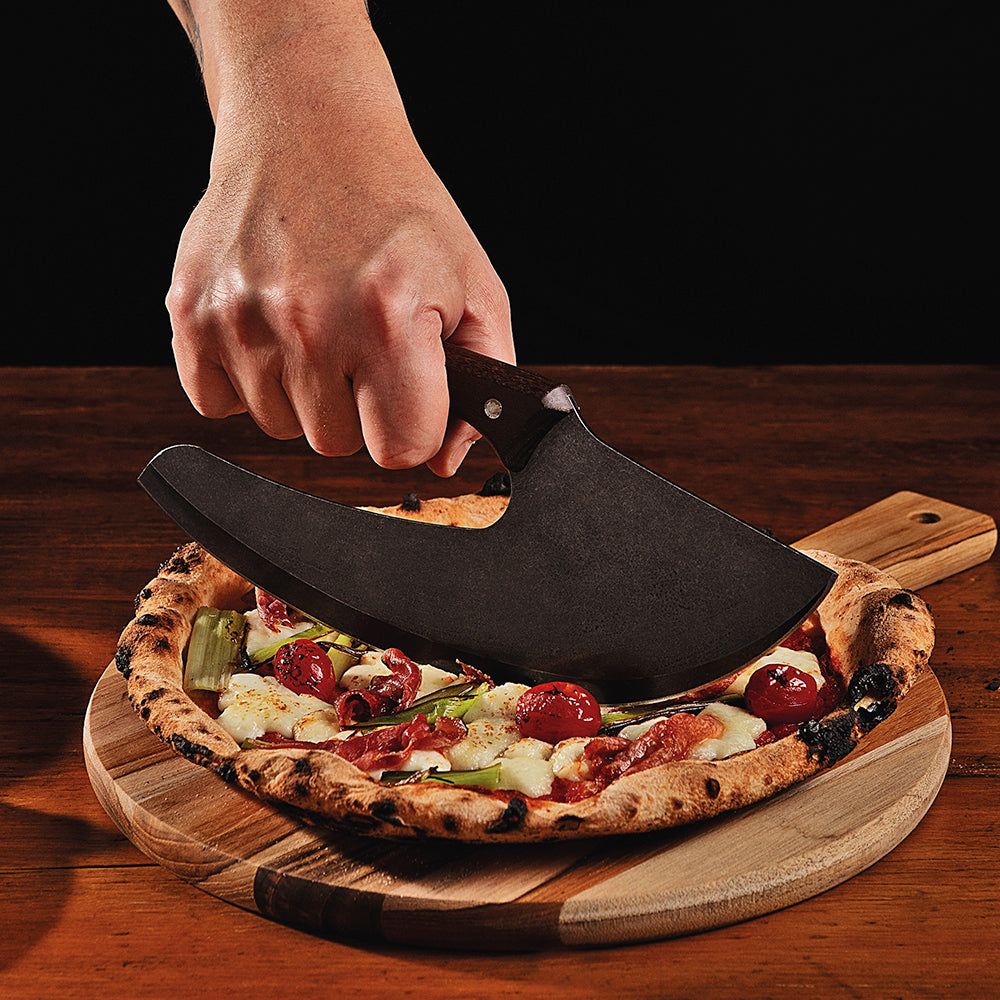 The multipurpose cleaver is extremely versatile: you can use it not only to cut meat but also to slice vegetables and harder foods, and slice pizzas. Developed with a blackened stainless-steel blade and resistant wood handle, it offers durability and precise cutting, providing efficient and practical cuts. It is also easy to use and ensures greater firmness, allowing you to have full control over the cut.